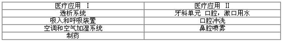 表1 醫(yī)用飲用水使用范圍
