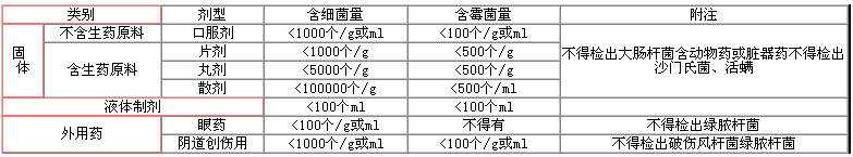 眾所周知,藥品是用來治病的,因此,它對(duì)藥檢的要求很嚴(yán)。表一是GMP驗(yàn)證中規(guī)定的藥品微生物檢查要求。